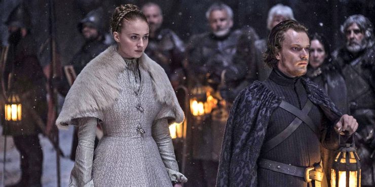 Después de presenciar la decapitación de su padre, ser cautiva en Desembarco del Rey y casi ser asesinada por su tía en el Nido de Águilas, Sansa finalmente regresó a su casa en Winterfell. Sin embargo, en ese momento, la tierra del norte estaba bajo el gobierno de Ramsay y ella se vio obligada a casarse con él. Ella era una hermosa novia y la estética de la escena de la boda fue una de las mejores del espectáculo, pero la ceremonia terminó con una nota inquietante.