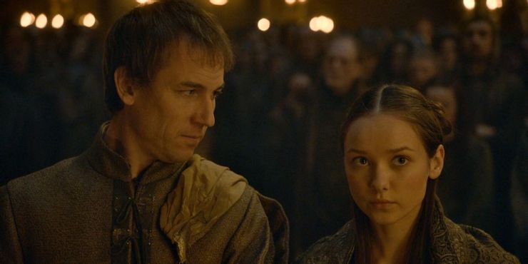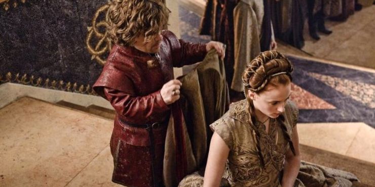 Sansa tuvo suerte de escapar de su compromiso con Joffrey, solo para verse obligada a casarse con Tyrion. Su boda en “Second Sons” de la temporada 3 fue un asunto triste, principalmente porque ninguno de los dos estaba feliz con el matrimonio. Para colmo de males, Joffrey se burló de la ceremonia escoltando a Sansa en lugar de su padre (a quien había matado) y se llevó el taburete que Tyrion necesitaba para poder cubrir a Sansa.