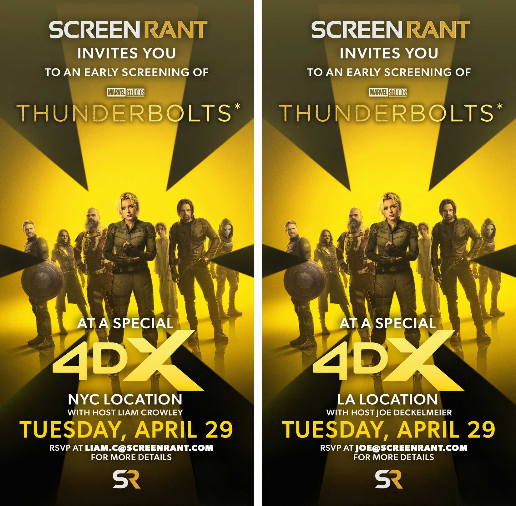 Días antes de su estreno del 2 de mayo, Invita a los lectores con sede en la ciudad de Nueva York y Los Ángeles a una proyección exclusiva en cada costa el martes 29 de abril. Ambas proyecciones tendrán lugar en ubicaciones especiales de 4DX, dando al público la mejor experiencia inmersiva dentro de la última historia de conjunto de MCU. La proyección de Nueva York también organizará un Q&A exclusivo después de la película con un invitado especial. Los boletos son limitados, así que correo electrónico liam.c@.com para la ciudad de Nueva York o Joe@.com para Los Ángeles ¡Ahora para obtener más detalles y asegurar su lugar!