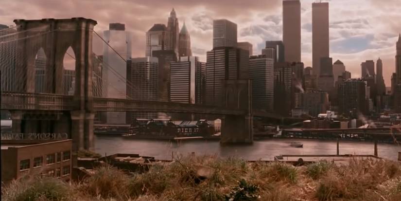 Filmación para Pandillas de Nueva York Concluido antes de los ataques del 11 de septiembre de 2001, lo que significa que durante los disparos del horizonte de la ciudad de Nueva York, las torres gemelas son visibles. Esta toma final es suficiente para transmitir el mensaje de la película a medida que los ataques del 11 de septiembre continúan persiguiendo a la sociedad. A pesar de que las generaciones más jóvenes parecen separadas y han tratado de avanzar como si nunca hubiera sucedido, al igual que las tumbas rotas de los disturbios de la Guerra Civil, no hay historia escapar.