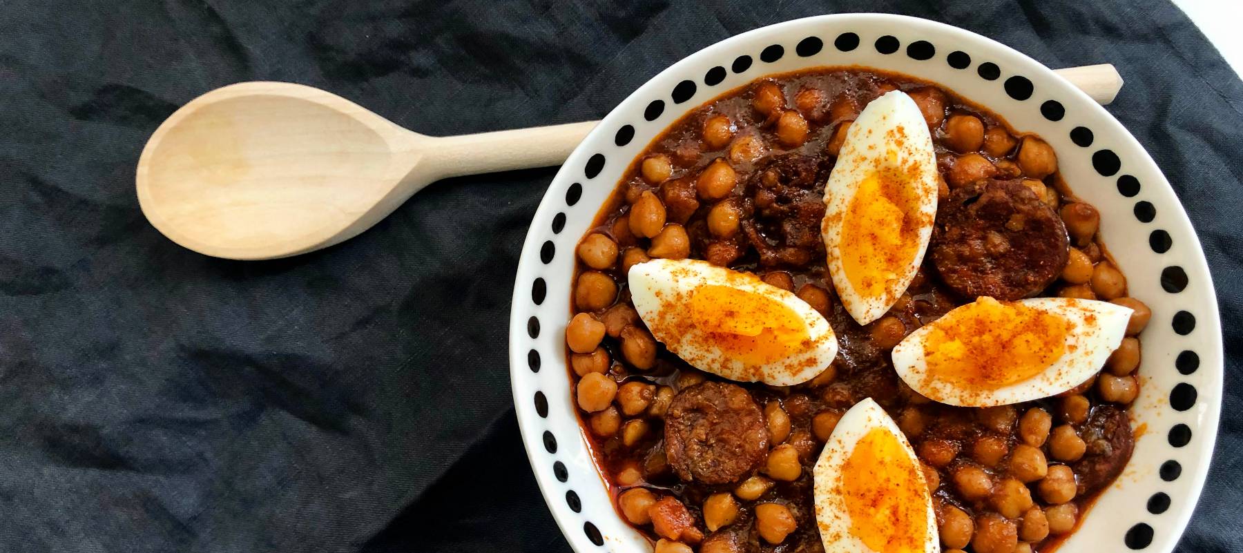 Los garbanzos a la riojana son una de esas preparaciones tradicionales que combinan legumbres con algún elemento derivado del cerdo, consiguiendo así un guiso capaz de proporcionar energía para un día entero de trabajo en el campo (aunque vayamos a pasarlo frente al ordenador). Como diría Rigoberta Bandini, “in Spain we call it a la riojana” cuando queremos decir que le vamos a estofar algo con chorizo -sirvan estas patatas como ejemplo-, y a veces rematarlo con huevo duro (aunque te animo a probarlos con el huevo a la plancha: esa yema semilíquida esparramada entre los garbanzos y trocitos de chorizo es un auténtico manjar).