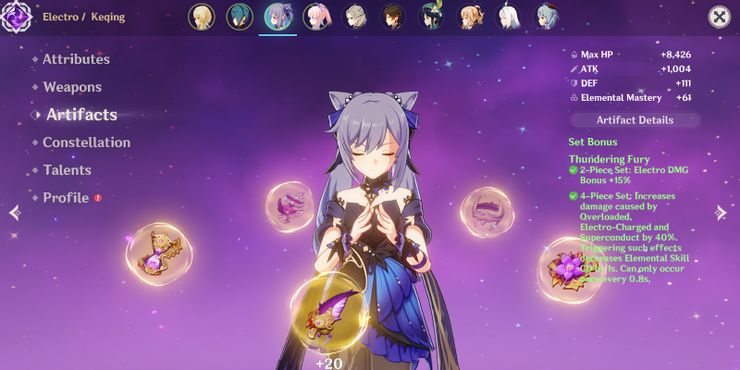 Dentro del juego hay actualmente treinta y tres conjuntos de Artefactos diferentes que contienen cada uno cinco Artefactos, con incluso más Impacto Genshin Los conjuntos de artefactos se lanzarán en un futuro próximo. Cada personaje jugable puede equipar cinco artefactos que pueden aumentar estadísticas como ATK, HP, Crit Rate, Crit DMG y más, dependiendo de cómo el jugador quiera desarrollar un personaje específico. Si bien cada artefacto tiene sus propias subestadísticas individuales, equipar artefactos del mismo conjunto ofrece mejoras de estadísticas adicionales para equipar conjuntos de dos o cuatro piezas.
