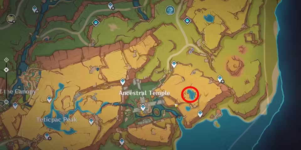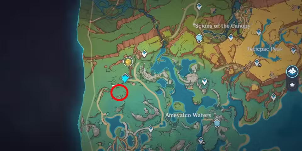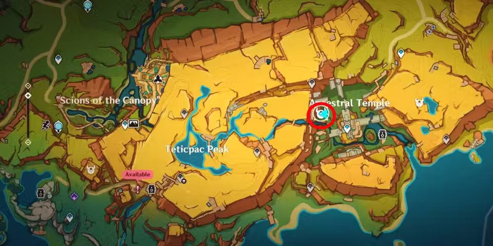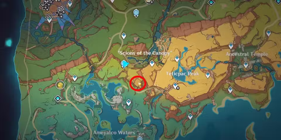 Dirígete hacia la esquina noroeste del mapa de Natlan, hacia el pequeño pueblo cerca de la colina Huiztli. Aquí debes encontrar tres llaves para exponer un tótem del alma nocturna, que te puede transportar a la leyenda local. |