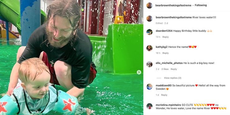 Ciertos fanáticos se burlan de que River podría ser parte pez después de notar cuánto disfrutaba el niño estar en el agua. Bear compartió algunas instantáneas del fin de semana de cumpleaños que tuvo lugar en un parque acuático cerca de su casa. Se vio a River vistiendo un traje de baño con el tema de un tiburón que incluía flotadores y lindos zapatos para el agua. Su orgulloso padre estaba justo a su lado, disfrutando cada segundo con su hijo. La pareja realizó algunas atracciones acuáticas e incluso jugó con los aspersores. No hace falta decir que River tuvo el mejor momento de su vida. Echa un vistazo a la publicación de Bear a continuación.