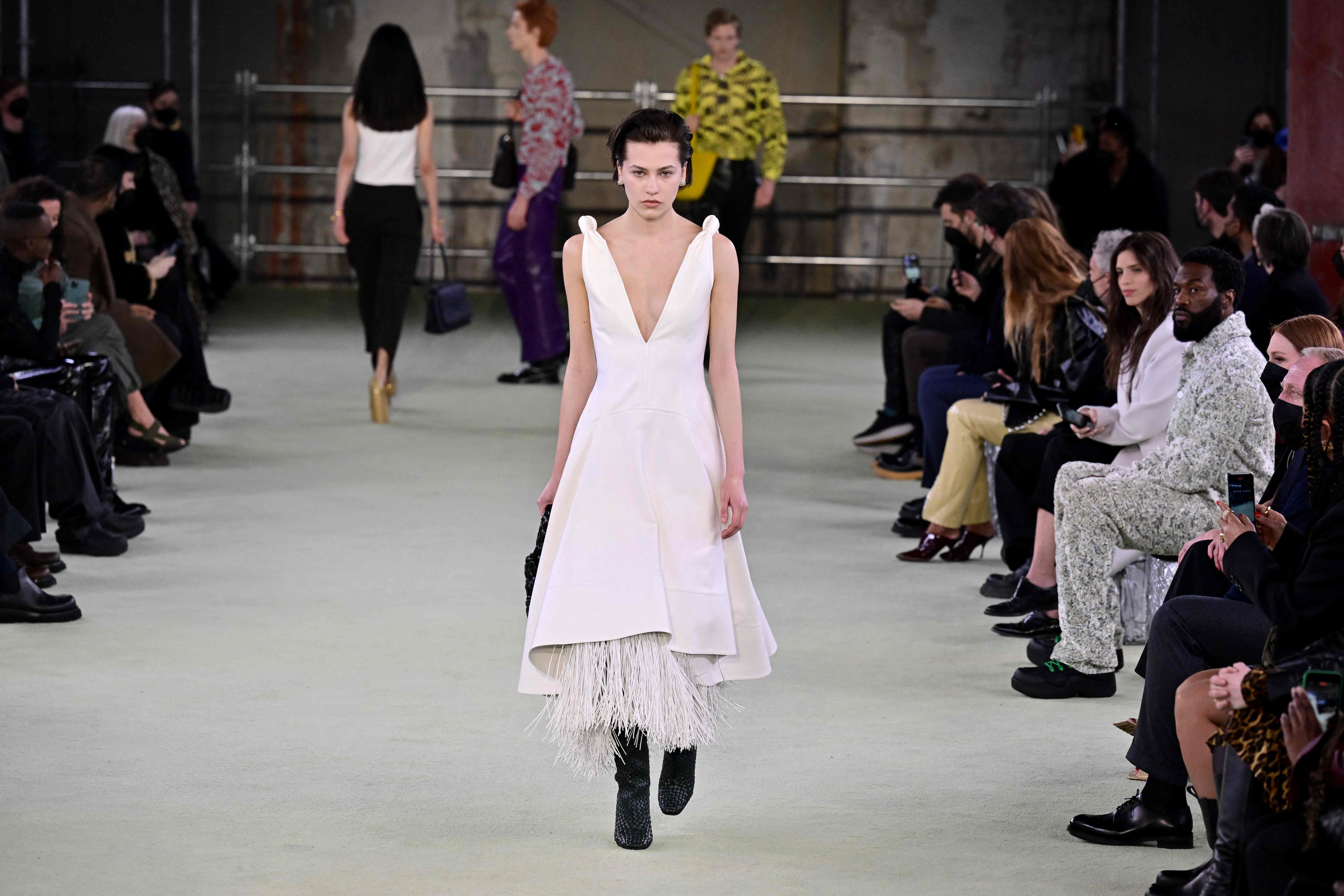 En general, las colecciones vistas en esta semana de la moda de Milán y diseñadas hace meses, resultaban, por lo ajenas a actualidad, una vía de engañosa evasión. Desde la vida en pijama que celebra Palm Angels o los kilts con zapatos de Don Pimpón de DSquared2, al debut al frente de Bottega Veneta de Matthieu Blazy, hasta el pasado noviembre director de diseño de la enseña y ahora sustituto de Daniel Lee, el diseñador que devolvió la relevancia la firma, creó algunos de los complementos más icónicos y copiados de los últimos años y, de paso, llenó las arcas de la casa italiana. El listón estaba alto pero Blazy lo salvó con creces. Fogeado en Raf Simons (que estuvo en el desfile), Maison Martin Margiela y Celine dejó sobre la pasarela una impresionante carta de presentación: faldas de cuero con cancanes de flecos debajo, chaquetones con espalda tortuga y manga media luna, y un trabajo de la piel que recupera la técnica clásica del intrecciato que ha hecho famosa a la firma. Comercial, pero especial: el sueño de cualquier CEO.