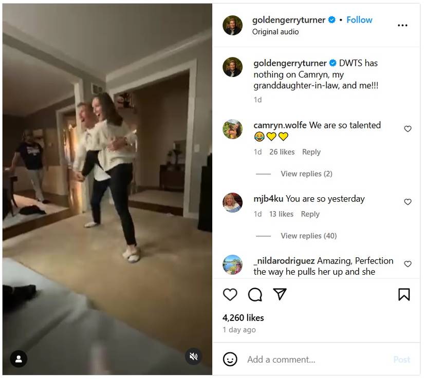 Joey y Jenn están compitiendo actualmente en bailando con las estrellas. Gerry se tomó el tiempo para criticar la nueva temporada afirmando él y su nieta política Camryn tienen más talento que la actual generación de competidores. El soltero dorado Lead publicó un video que lo mostraba intentando un movimiento de baile complicado que involucraba levantar a Camryn del piso. Añadió el título: “¡¡¡DWTS no tiene nada que compararnos con Camryn, mi nieta política y yo!!!“