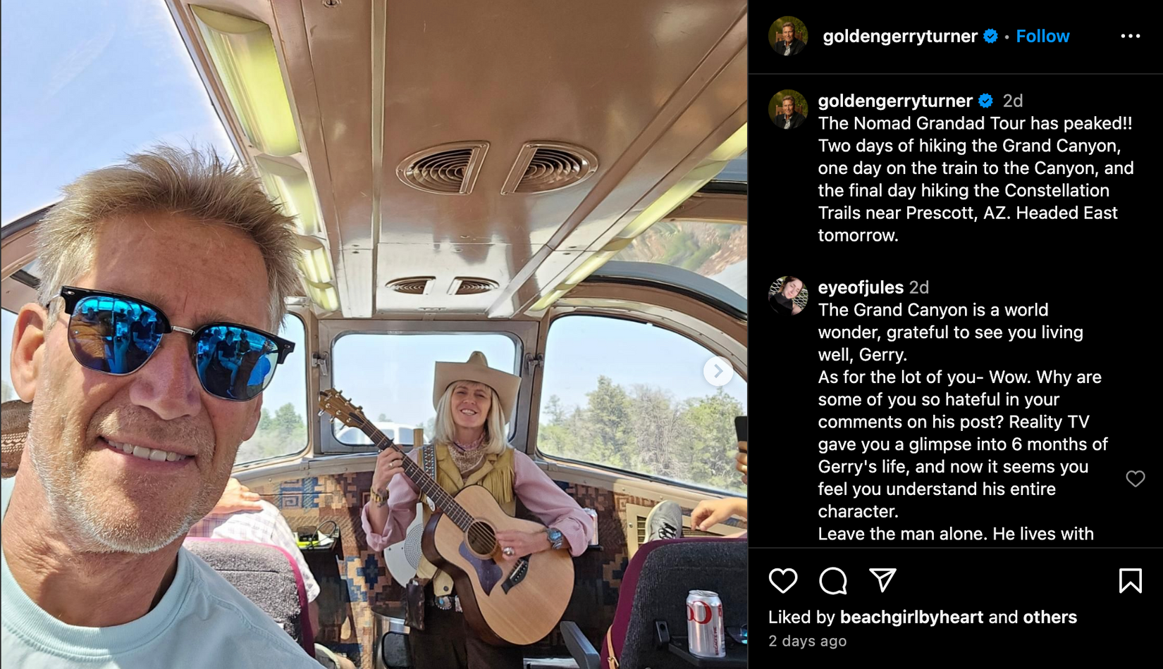 En su resumen más reciente de su gira por la mayor parte de los EE. UU., Gerry compartió que estaba emocionado de dirigirse a través del Gran Cañón. “Dos días de caminata por el Gran Cañón, un día en tren hasta el Cañón y el último día caminando por los Constellation Trails cerca de Prescott, Arizona”. Gerry explicó pero se encontró con el rechazo de Bachiller Nación.