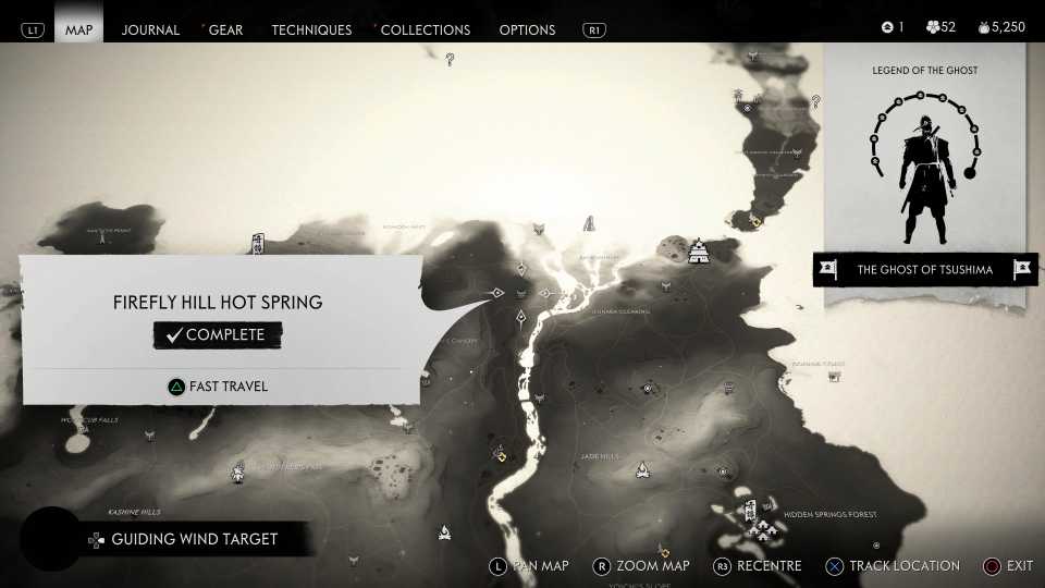 Al usar puntos de habilidad para desbloquear mejoras para Guiding Wind, los jugadores pueden configurar la habilidad Guiding Wind para llevar a Jin a Hot Springs cercanas que no están marcadas en el mapa.