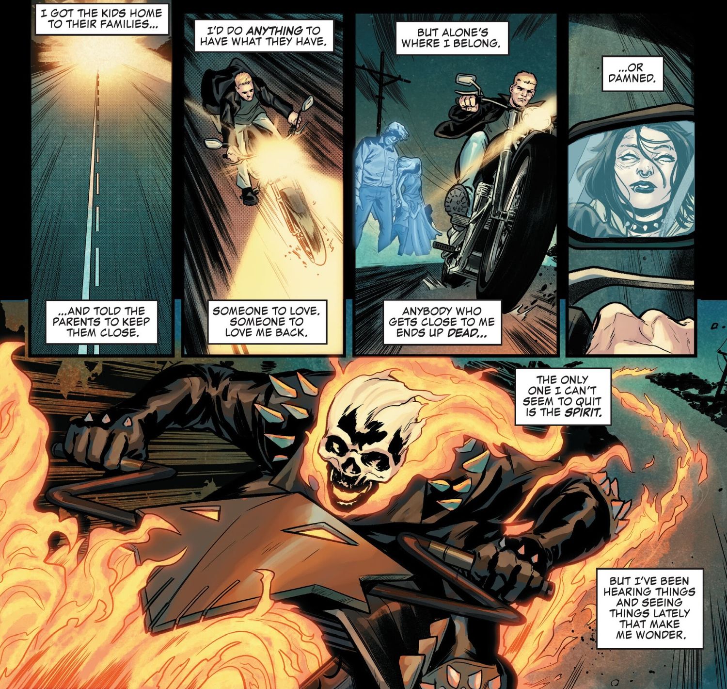 Advertencia: ¡Spoilers de Ghost Rider #21 a continuación!En su viaje a través del país con Talia Warroad, Johnny Blaze y el Jinete Fantasma han tratado de hacer el bien purgando la oscura influencia que acecha en las carreteras de Estados Unidos. Pero cuando Ghost Rider usa su poder para absolver a los corruptos de sus pecados, traiciona su propósito vital y significa el fin del mandato de Johnny como Espíritu de Venganza.