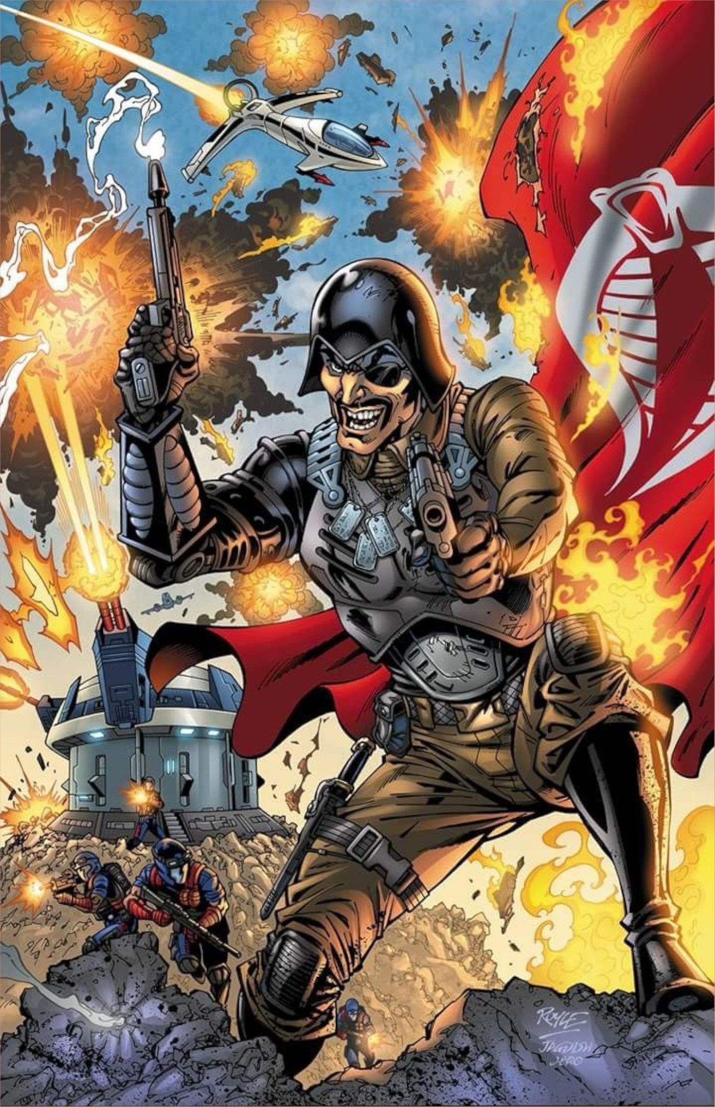 Lanzada a través de Skybound.com, la variante Major Bludd de Duque El número 3 es cortesía de Karl Kerschl, mostrando al mercenario Cobra en todo su esplendor armado. La variante de Kerschl es el primer vistazo de los lectores a Bludd en el Universo Energon.