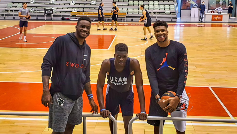 El dos veces elegido como mejor jugador (MVP) de la NBA y estrella de los Milwaukee Bucks, el ala pívot griego Giannis Antetokounmpo, está en Murcia, donde pasará unos días junto a su hermano Alex, el joven jugador de la cantera del UCAM, que llegó al club hace unos meses.