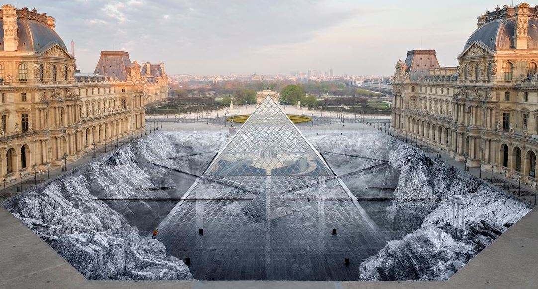 PARIS. En una hazaña de ilusión óptica, el artista callejero francés JR completó un collage que hundió la pirámide del museo Louvre en un vasto abismo para conmemorar el aniversario de 30 años de la famosa estructura de cristal.