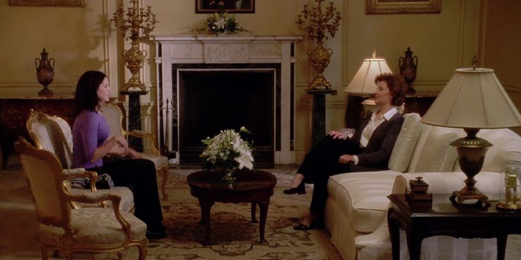 A Lorelai le cuesta mucho visitar la casa de sus padres y pedirles que paguen la matrícula de Chilton de Rory. La escena en el episodio piloto es triste, incómoda y tensa, con Lorelai, Emily y Richard deseando poder llevarse mejor.