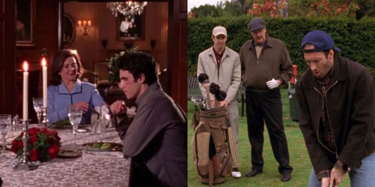Cuando Rory comenzó a salir con Jess, sabía que él odiaría cenar con sus abuelos y el tipo de vida que llevaban, y tenía razón. Jess llegó tarde, tenía un ojo morado y salió temprano de la cena porque se sentía muy incómodo. Del mismo modo, Lorelai no quería llevar a Luke a casa de sus padres, pero sentían que no tenían otra opción. Luke optó por un día de golf con Richard, que, al igual que la cena de Rory y Jess, salió horrible. Los paralelismos entre ambos encuentros y saludos no se perdieron.