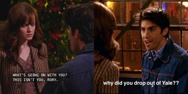 Aunque Rory y Jess no estaban saliendo y ella tenía una relación extraña con Dean, Jess apareció en su dormitorio y le rogó que se escapara con él. Al igual que Luke con Lorelai, la presión de Jess desanimó a Rory.