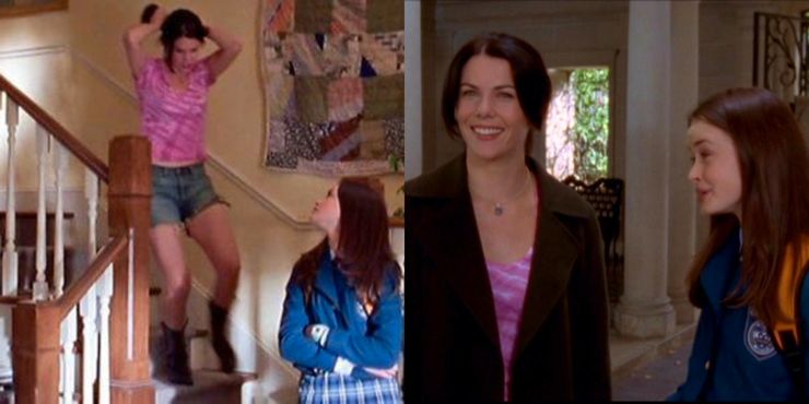 El primer día de Rory en Chilton, Lorelai se quedó dormida y no tenía nada que ponerse porque era día de lavandería. El atuendo que eligió fue uno de los peores atuendos de Lorelai en chicas gilmore porque una camiseta rosa fuerte, jeans cortados y botas de vaquero no eran apropiados para usar en una escuela privada de lujo.