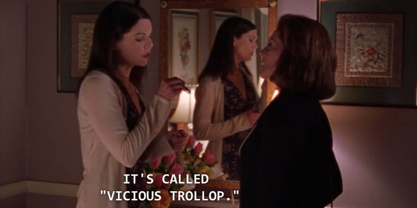 El famoso labial Vicious Trollop aparece en chicas gilmore temporada 2, episodio 16 “Ahí está el problema”. En el episodio, Lorelai acepta a regañadientes la invitación de Emily para un fin de semana de spa entre madre e hija. En un momento muy fuera de lugar, cuando se están preparando para la cena, Emily elogia el lápiz labial de Lorelai y le pregunta cómo se llama, a lo que Lorelai bromea: “Se llama Tropa viciosa“. Si bien Emily no aprecia la broma de su hija, termina tomando prestado el lápiz labial Vicious Trollop. Este pequeño acto de unión se profundiza, poco después, Emily deja que Lorelai la convenza de evitar el menú pesado de tofu en el restaurante del spa por Una noche en la ciudad.