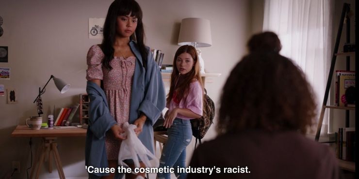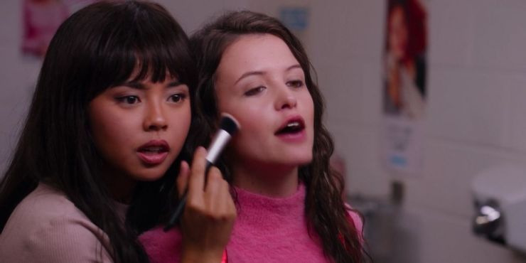 En una escena, Max, Norah y Abby estaban todos de pie frente al espejo del baño maquillándose. Ginny las miró con asombro, fascinada por las máscaras que las mujeres usan para cubrir su verdadero yo. Adorablemente, maquillarse con amigas en el baño de la escuela secundaria va de la mano con la experiencia de una adolescente. Fue dulce verlos aprender nuevos trucos y tomar prestado el maquillaje del otro antes de ir por caminos separados.