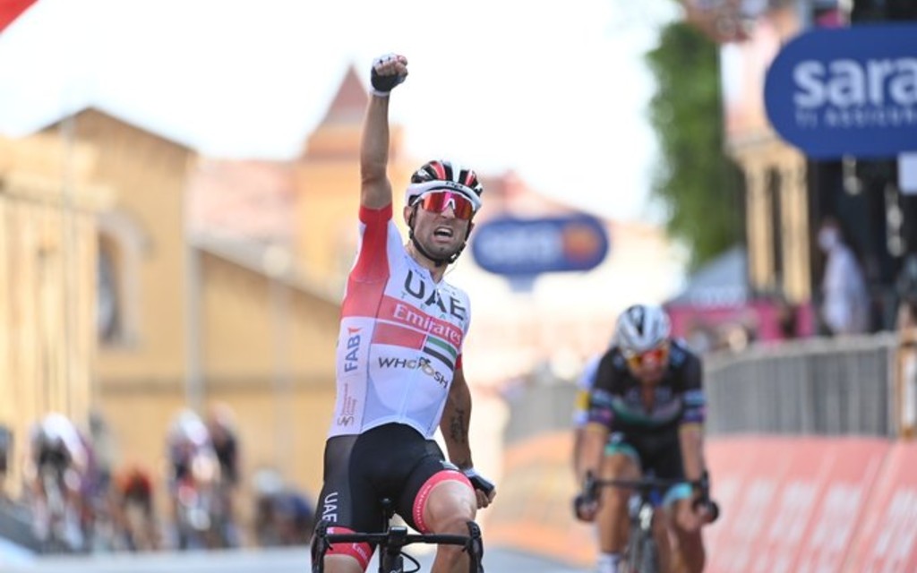 El pedalista italiano del equipo UAE Team Emirates completó en primer lugar los 149 kilómetros entre Alcamo y Agrigento; retiene Filippo Ganna la maglia rosa de líder.