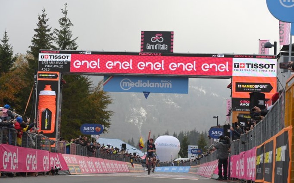 El pedalista británico (Ineos) se impuso en los demandantes 185 kilómetros entre Rivolto y Piancavallo; Joao Almeida retiene la maglia rosa de líder.