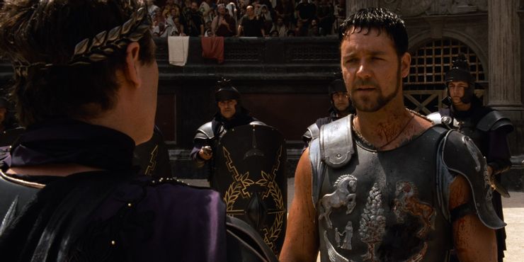 El fin de Gladiador ve a Maximus enfrentarse al atroz Commodus (Joaquin Phoenix) dentro de la gran arena de gladiadores de Roma, con una batalla que une los hilos narrativos de la película en un crescendo sangriento final. Apuñalado por Commodus antes de la pelea, el gladiador Maximus aún puede derrotar a su oponente antes de colapsar en el suelo mientras su alma se reúne con su familia en Elysium. Luego es honrado como un soldado de Roma mientras trae la democracia a la capital y restaura el honor de su familia. Gladiador luego termina con Juba (Djimon Hounsou) visitando el Coliseo por la noche y enterrando las figurillas de la esposa y el hijo de Maximus en el lugar donde murió antes de prometer volver a ver a Maximus – “pero no todavía.“