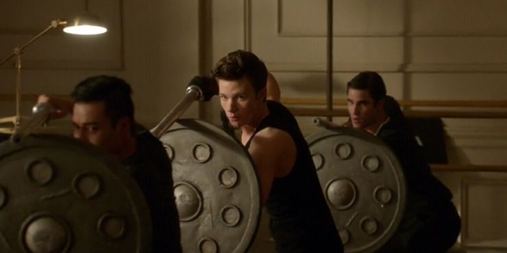 La escena presenta algunos momentos inspirados, que incluyen tener una postura de ejército de espada y escudo, entrenamiento del personal de Bo e incluso kickboxing. Culmina en la esgrima de Blaine y Kurt, en la que Kurt vence fácilmente a Blaine.