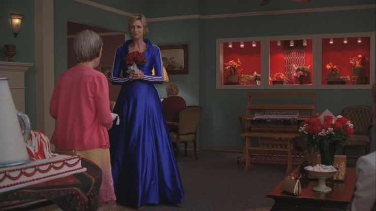 Sue está consternada cuando se retractan de su oferta de ayudarla, pero permanece en el refugio para ayudar a quienes lo necesitan, y esto lleva al club Glee a aprender una lección valiosa. El episodio termina con ellos uniéndose a ella y ayudándola. No es frecuente que Sue sea la brújula moral de un episodio, pero cuando lo es, es excelente.