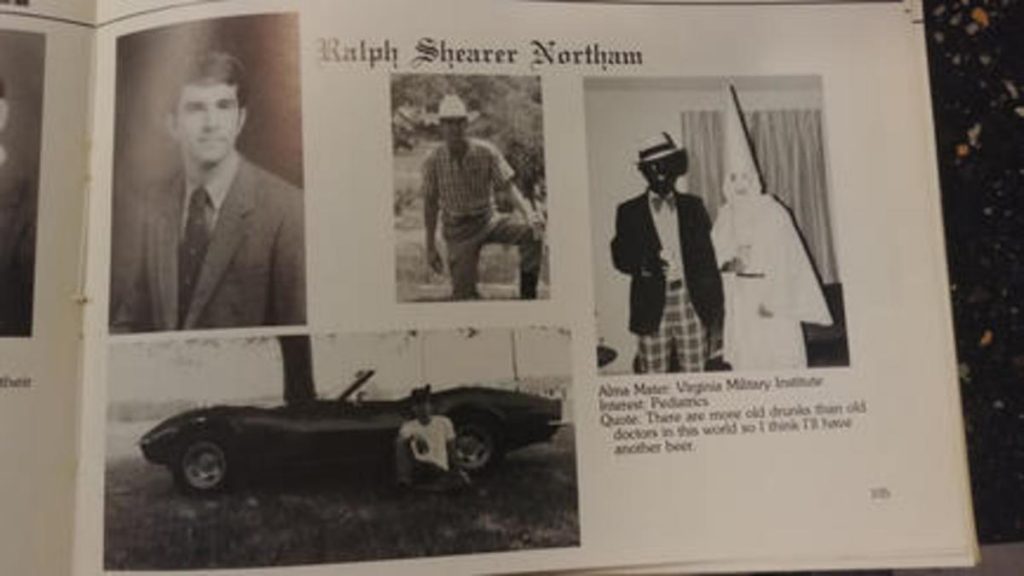 La imagen, encontrada dentro del anuario del año 1984 de la Eastern Virginia Medical School, está situada junto a otras fotos de quien sería el futuro gobernador. La fotografía fue difundida por primera vez por el sitio web conservador Big League Politics.