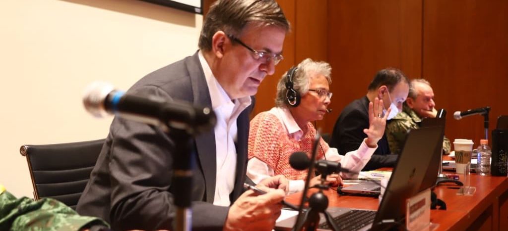 Durante una reunión virtual, la secretaria de Gobernación, Olga Sánchez Cordero y el canciller Marcelo Ebrard -quienes estuvieron en un salón de Palacio Nacional-, dialogaron con los mandatarios de Baja California, Baja California Sur, Chihuahua, Coahuila, Durango, Nuevo León, San Luis Potosí, Sinaloa, Sonora, Tamaulipas y Zacatecas.