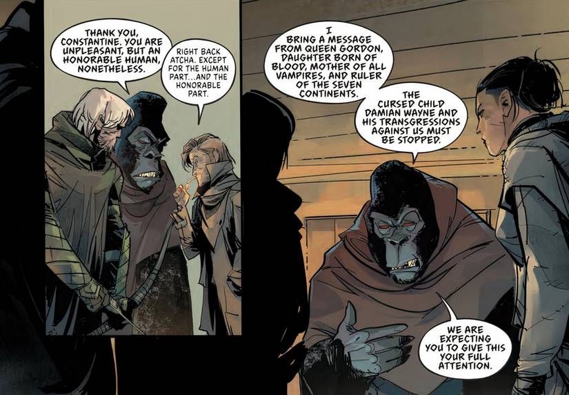 Quinta Guerra Mundial #1 presenta a Gorilla Grodd, uno de los lugartenientes vampiros más confiables de Batgirl, reuniéndose con el líder de la resistencia humana Oliver Flecha verde La reina negocia los términos de su tenue tregua. Grodd llega para discutir la necesidad de una alianza contra “El niño maldito Damian Wayne”, Prologando su mensaje con la gran declaración: “Traigo un mensaje de la Reina Gordon, Hija Nacida de Sangre, Madre de Todos los Vampiros y Gobernante de los Siete Continentes”. Este impresionante título revela el enorme alcance y poder que Batgirl ha adquirido desde que se convirtió en la nueva gobernante vampiro en DC vs. Vampires.