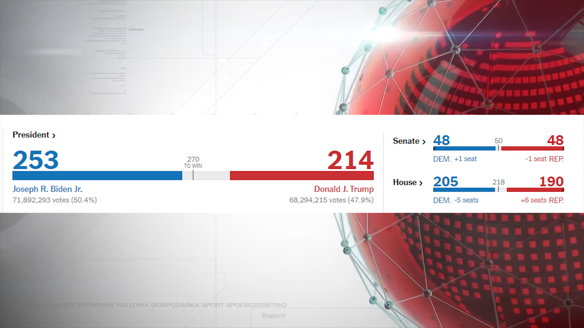 En el último recuento, Biden está en 253 y Trump en 214.