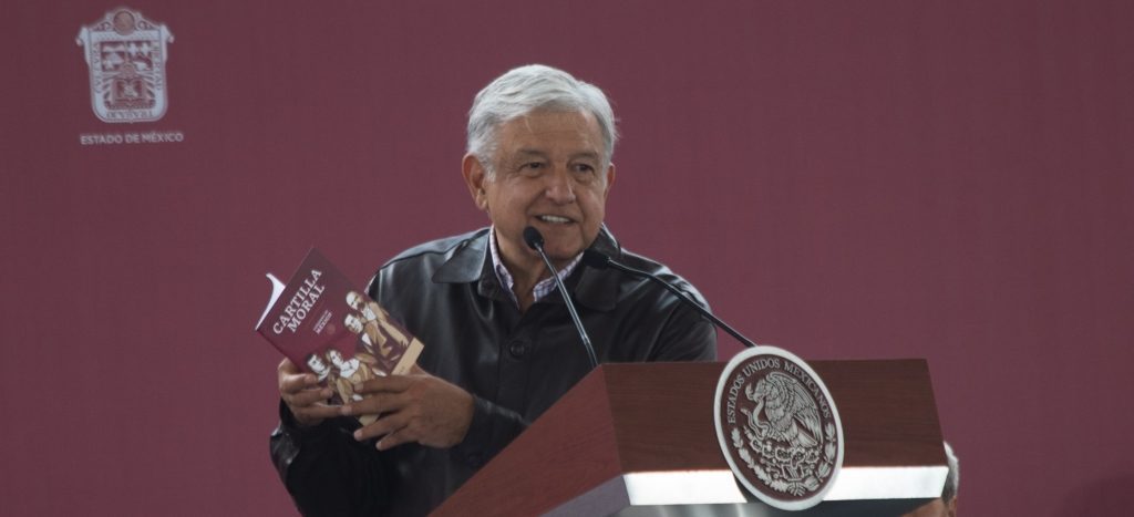 El Gobierno de Andrés Manuel López Obrador comenzó la distribución de la Cartilla Moral durante el arranque del programa de pensiones para adultos mayores el pasado domingo en Valle de Chalco, Estado de México.