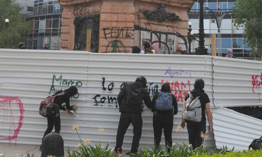La Conservaduría de Palacio Nacional considera lamentables los daños ocasionados al monumento civil más importante de México (…) lo acontecido en contra de Palacio Nacional no tiene justificación”, dijo Hacienda en un breve comunicado en relación con los destrozos ocasionados por al menos 100 encapuchados.