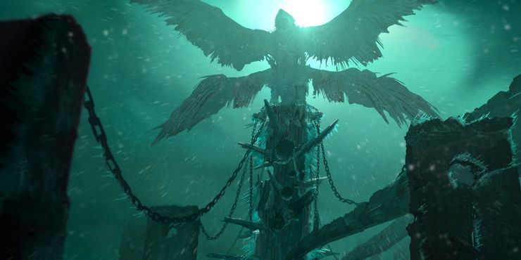 Los jugadores pueden recordar sus propias experiencias navegando por el frío paisaje, mientras Kratos y Atreus regresan después de ser arrojados accidentalmente al reino con Baldur. Si bien un águila congelada posada en lo alto de un poste puntiagudo puede ser lo último en la mente de los jugadores en ese horrible lugar, es representativo de los peligros únicos que el reino arroja sobre cualquier criatura viviente lo suficientemente desafortunada como para terminar allí.