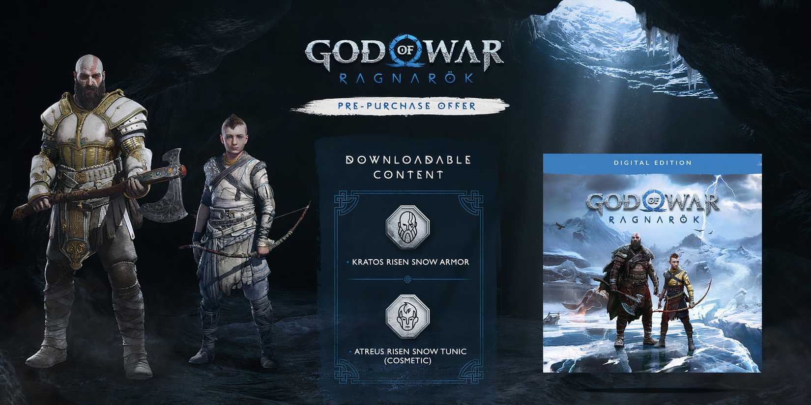 Independientemente de la edición de Dios de la guerra Ragnarök Los jugadores que compren en Steam o Epic Game Store, si reservan el juego antes del 19 de septiembre, recibirán la armadura Risen Snow de Kratos y el cosmético de túnica Risen Snow de Atreus. Al igual que con el conjunto Darkdale, este es exclusivo pero se desbloquea en el juego mediante la progresión de la historia.lo que significa que los jugadores no pueden usarlos desde el comienzo del juego, pero pueden equiparlos después de completar la primera Path Quest de la historia principal “Sobreviviendo al invierno de Fimbul“, como estará en el cofre azul brillante de Lost Loot junto a la tienda de Brok y Sindri.