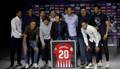Miembros del ‘staff’ técnico, familiares y amigos también cotribuyeron a llenar prácticamente las cuatro primeras filas del auditorio del Metropolitano que este jueves acogió el ‘hasta luego’ de Juanfran Torres del Atlético de Madrid.