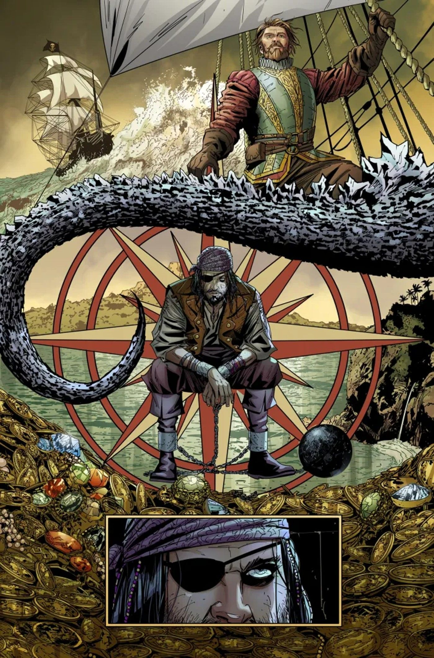 Editorial IDW Godzilla: Aquí hay dragones – del escritor Frank Tieri y el artista Iñaki Miranda (el equipo creativo detrás de la serie 2018 de DC vieja señora harley) – tomará “lectores de vuelta a una era de navegación y superstición”, enfrentando al temible kaiju contra la famosa figura histórica Sir Francis Drake, un explorador y corsario más conocido por ser el primer inglés en circunnavegar el planeta.