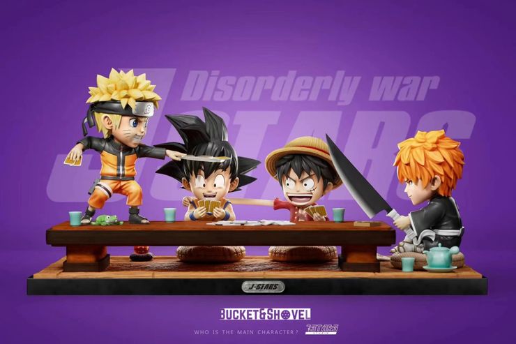 Ahora, Estudio de 7 estrellas El último producto muestra lo que sucedería si Goku, Naruto, Ichigo y Luffy se sentaran en la misma mesa para jugar a las cartas. La figura compuesta se llama “J – Guerra desordenada de estrellas”, y el nombre encapsula perfectamente el caos que se produciría si estos cuatro personajes salvajes estuvieran juntos en la misma habitación. Luffy y Goku están sentados a la mesa, y mientras el Saiyajin mira sus cartas, el futuro Rey de los Piratas usa sus poderes elásticos para hacer trampa, aprovechando el olvido característico de Goku. Naruto está de pie sobre la mesa, lanzando una carta a Ichigo, estilo shuriken, mientras que el Shinigami está listo para desviarla con su Zanpakuto de confianza, Zangetsu. La escena se completa con muchos pequeños detalles, como la billetera con forma de rana de Naruto o la insignia sustituta de Shinigami de Ichigo. Los personajes están reunidos alrededor de un Chabudai, la mesa baja japonesa, y sentados sobre cojines Zabuton, lo que le da a la escena un aspecto muy tradicional que contrasta muy bien con la locura de los personajes. La estatua, que mide 19 cm de ancho, 17 cm de profundidad y 33 cm de alto, se puede reservar hasta el 11 de julio de 2022 a través de sitios web especializados. Será lanzado por Bucket&Shovel en el cuarto trimestre de 2022.