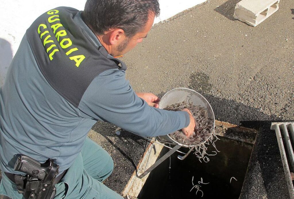 Cádiz es uno de los puntos calientes tradicionales de la pesca ilegal de angula, que se intenta luego sacar viva de España. En los últimos años las incautaciones en los aeropuertos españoles de cargamentos de angulas escondidas en maletas se han multiplicado. En 2018 cayó una gran red que operaba en España y Portugal y que había sistematizado los envíos en los equipajes.