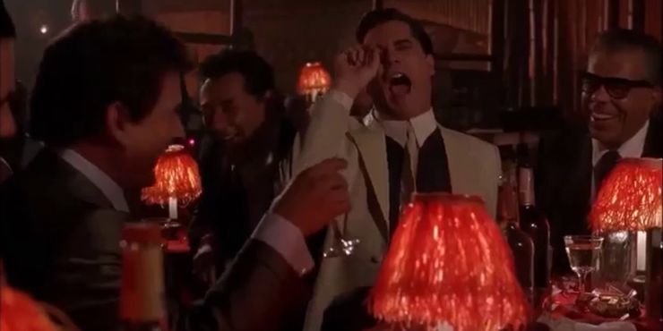 Entonces, lo que pasa es que un par de mafiosos están sentados en una mesa en un restaurante. Tommy DeVito (Joe Pesci) hace una broma y Henry se ríe mucho mientras dice que es muy divertido. Para sorpresa de todos, Tommy despotrica y se pregunta por qué Henry piensa que es gracioso. Después de darse cuenta de que Tommy solo se estaba metiendo con él, Henry se dobla y mantiene la broma.