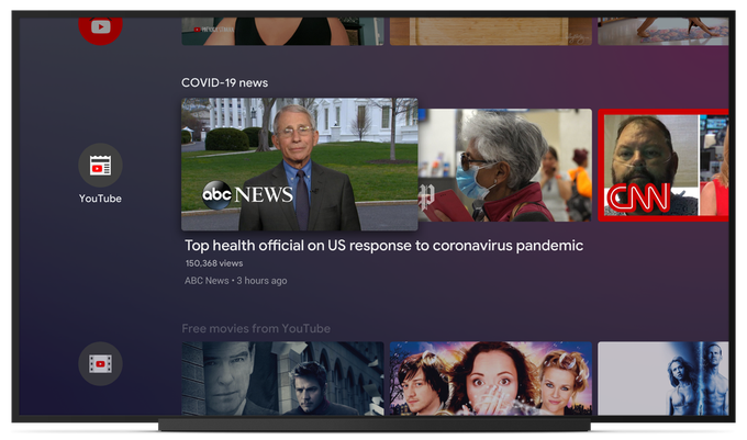 En los dispositivos Android TV, también agregó tres nuevas filas de la pantalla de inicio de YouTube, incluidas COVID-19 News, Stay Home #WithMe y películas gratuitas de YouTube. Android TV también obtuvo más colecciones de Google Play, mientras que las aplicaciones de transmisión ahora se organizan en una fila titulada “Transmite los programas y las películas que amas”.