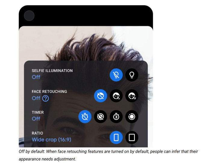 Google apunta a los filtros fotográficos faciales y otras técnicas de “embellecimiento” que los expertos en salud mental creen que pueden deformar la confianza en sí misma de una persona, especialmente cuando se les presenta a usuarios más jóvenes. La compañía dice que ahora se apoyará en la orientación de expertos al aplicar los principios de diseño para los filtros de fotos utilizados por la aplicación Android Camera en los teléfonos inteligentes Pixel. En el Pixel 4a, Google ya ha desactivado el retoque facial de forma predeterminada, dice, y señala que la interfaz pronto se actualizará para incluir lo que Google describe como iconos y etiquetas descriptivos “sin valor” para los efectos de retoque facial de la aplicación.
