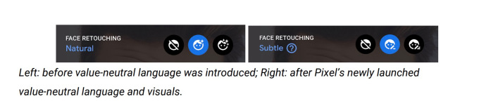 Eso significa que no utilizará un lenguaje como “filtro de belleza” ni implicará, incluso de formas más sutiles, que las herramientas de retoque facial pueden hacer que alguien se vea mejor. Estos cambios también se implementarán en Android. Aplicación de cámara en otros teléfonos inteligentes Pixel a través de actualizaciones.
