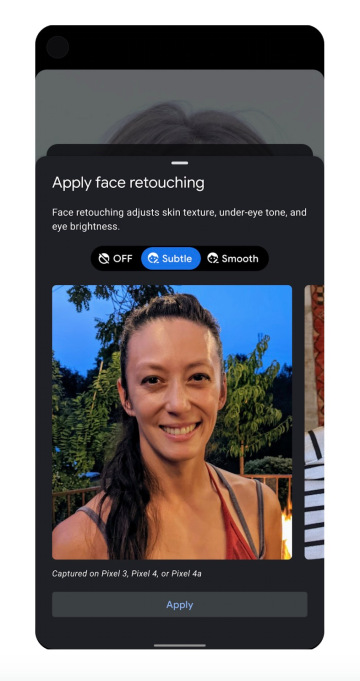 En los teléfonos inteligentes Pixel, comenzando con el Pixel 4a, cuando usa efectos de retoque facial, se le mostrará más información sobre cómo se aplica cada configuración y qué cambios específicos hará en la imagen. Por ejemplo, si elige el efecto “sutil”, le explicará que ajusta la textura de su piel, el tono debajo de los ojos y el brillo de los ojos. Ser transparente sobre los efectos aplicados puede ayudar a desmitificar los ajustes, a veces sutiles, que los filtros de retoque facial están haciendo en nuestras fotos.