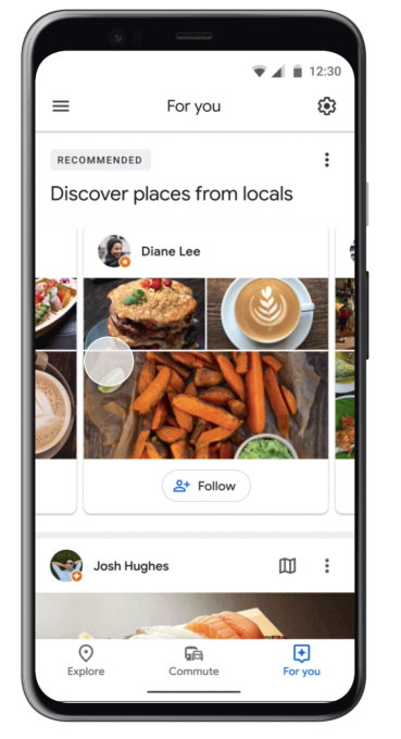 Sin embargo, la nueva función de recomendaciones que llegará a estos 9 mercados de prueba se centrará más en las fotos de los Guías locales, en lugar de sus palabras. En la pestaña "Para usted" de Google Maps, sus recomendaciones se mostrarán en forma de collages de fotos; solo al hacer clic, verá lo que escribieron. El efecto es uno en el que la aplicación Google Maps tiene una sensación similar a la de Instagram.