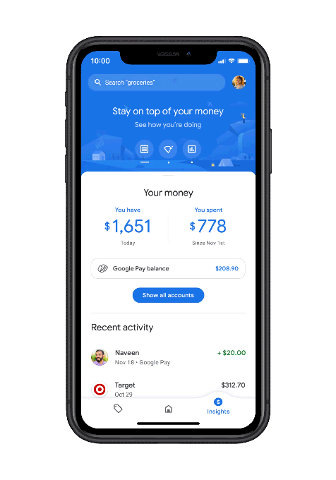 Google también se ha asociado con 11 bancos para lanzar un nuevo tipo de cuenta bancaria en 2021. Llamadas Plex, estas cuentas bancarias móviles primero no tendrán tarifas mensuales, cargos por sobregiro o saldos mínimos. Los bancos serán los propietarios de las cuentas, pero la aplicación Google Pay será el conducto principal para administrar estas cuentas. Los socios de lanzamiento para esto son Citi y Stanford Federal Credit Union.
