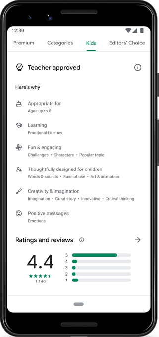 Las aplicaciones se agruparán por edad: 5 y menores, edades 6-8 y edades 9-12. Google también incluirá información en la lista de la aplicación sobre por qué recibió una calificación alta.