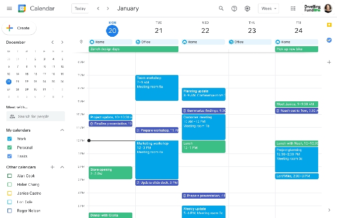 Los empleados ahora pueden indicar si estarán virtuales o en persona en ciertos días en Calendario para las expectativas de colaboración. Como complemento, los usuarios pueden llamar a sus colegas en dispositivos móviles y de escritorio en Google Meet.