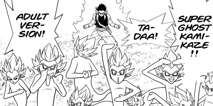 En Dragon Ball Súper“‘Future’ Trunks Saga” de Akira Toriyama y Toyotarou, Goku y Vegeta se enfrentan a un villano inmortal llamado Zamasu junto con una versión alternativa del villano que tomó el cuerpo de Goku y se convirtió en el luchador casi imbatible conocido como Gokú Negro. Zamasu es un dios, y después de pedir un deseo a las Super Dragon Balls, se volvió invencible. Entonces, cuando se fusionó con su contraparte impulsada por Saiyan, los dos villanos separados se convirtieron en uno y al hacerlo reclamaron el título como esfera del dragónLa fusión más fuerte. Al final de esta saga, Fusion Zamasu se duplicó en cientos de entidades separadas pero igualmente poderosas en un esfuerzo por matar a los Z Fighters de una vez por todas y continuar su oscura búsqueda de eliminar toda vida mortal existente. Si bien los Z Fighters derrotan a Zamasu con la ayuda de Zeno, un dios todopoderoso, habrían muerto fácilmente si el Omni King se negara a ayudarlos en su batalla. Sin embargo, si tuvieran a Gotenks con ellos durante esta batalla, podría haber usado el ataque Super Ghost Kamikaze para al menos distraer a Zamasu el tiempo suficiente para defenderse de su ataque, ya que esa técnica habría herido temporalmente a todos los Zamasus a la vez.