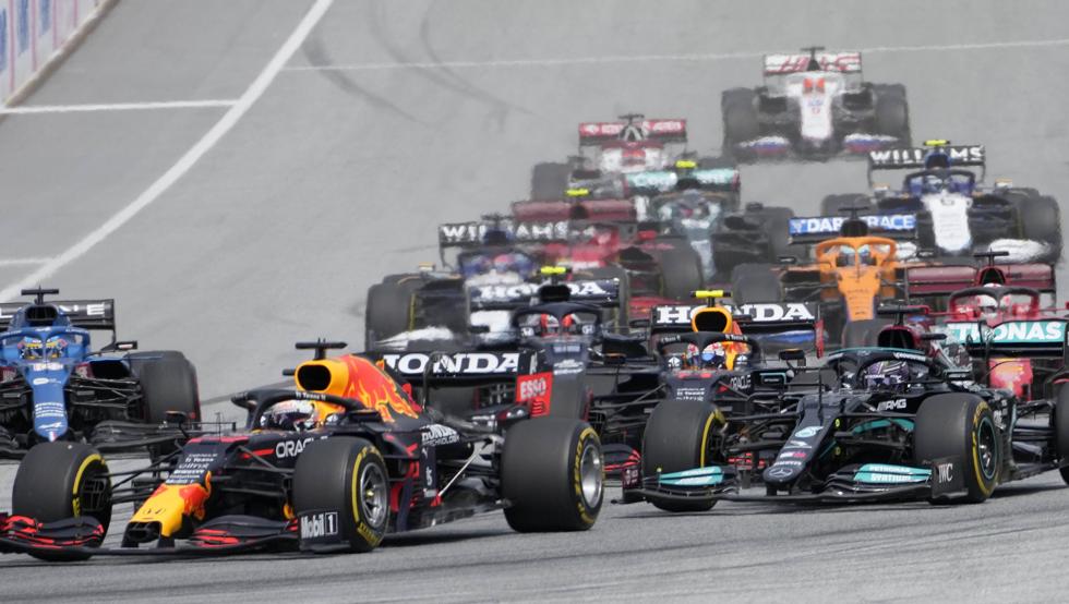 La salida del GP de Estiria de F1 siempre es apasionante, con dos curvas muy cerradas tras las largas rectas del Red Bull Ring en las que puede pasar absolutamente de todo, especialmente en la curva 3, donde habitualmente se genera un embudo de coches en el que se pasa de los 300 km/h a los 80. Ahí, era muy fácil que se hubiera producido algún toque. Pero en esta ocasión, el arranque de la carrera de este domingo fue muy limpia, solo con un toque de Pierre Gasly, que salía sexto, con Leclerc en los primeros metros que le hizo pinchar la rueda trasera izquierda al francés, eliminando de inicio a uno de los contendientes claros a liderar la zona media por el gran ritmo que se le preveía.